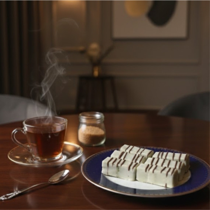 Fıstıklı Markiz, yanında bir fincan sade Türk kahvesi veya hafif bir beyaz çay ile mükemmel uyum sağlar. Özel günlerde misafirlere sunulabilecek kadar şık, kahve yanına eşlik edecek kadar da pratiktir.