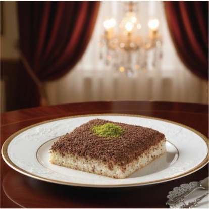 Antep fıstığı yerine kakao ve çikolata parçacıklarıyla süslenir.