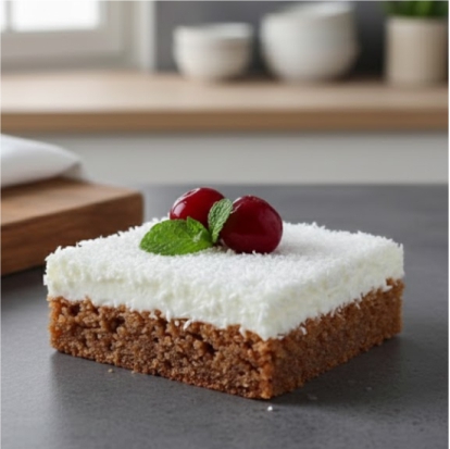 Kıbrıs tatlısı, şerbetli tatlı sevenlerin kalbini fetheden, hafifliğiyle meşhur bir lezzet. Galeta unlu kekinin cevizi ve Hindistan cevizi aromasıyla birleşimi, pürüzsüz vanilyalı krema ve soğuk şerbetle taçlanıyor.